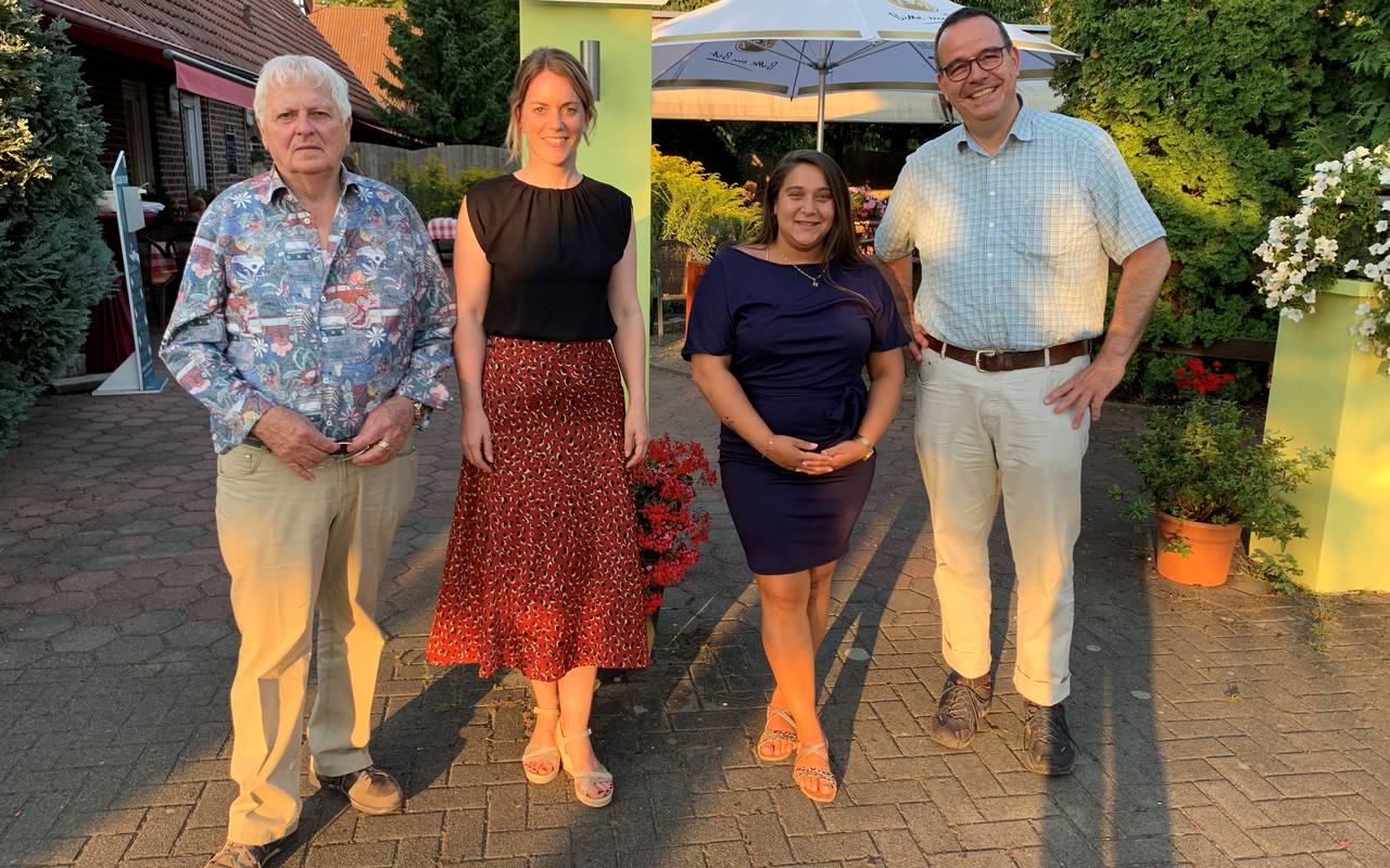 Bei einem gemeinsamen Abendessen in Hiltrup wurde die Spende offiziell an die Referentin für Fundraising am Clemens, Sabrina Schulz (Foto 2.v.l.), und an Kinderklinik-Chef Dr. Otfried Debus (1.v.r.) übergeben. Im Pelikanhaus sollen Familien vorübergehend leben können, deren schwerkranke Kinder im Clemens zum Teil monatelang behandelt werden müssen, erklärt Sabrina Schulz: