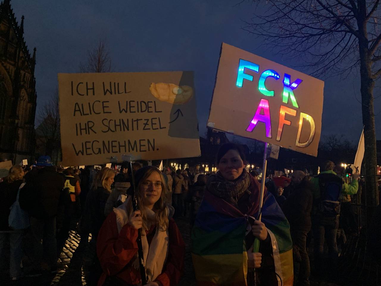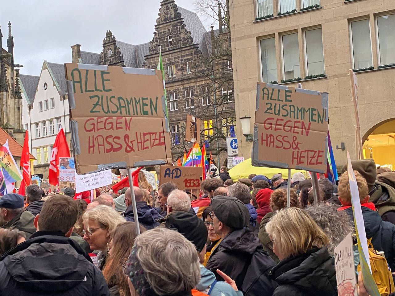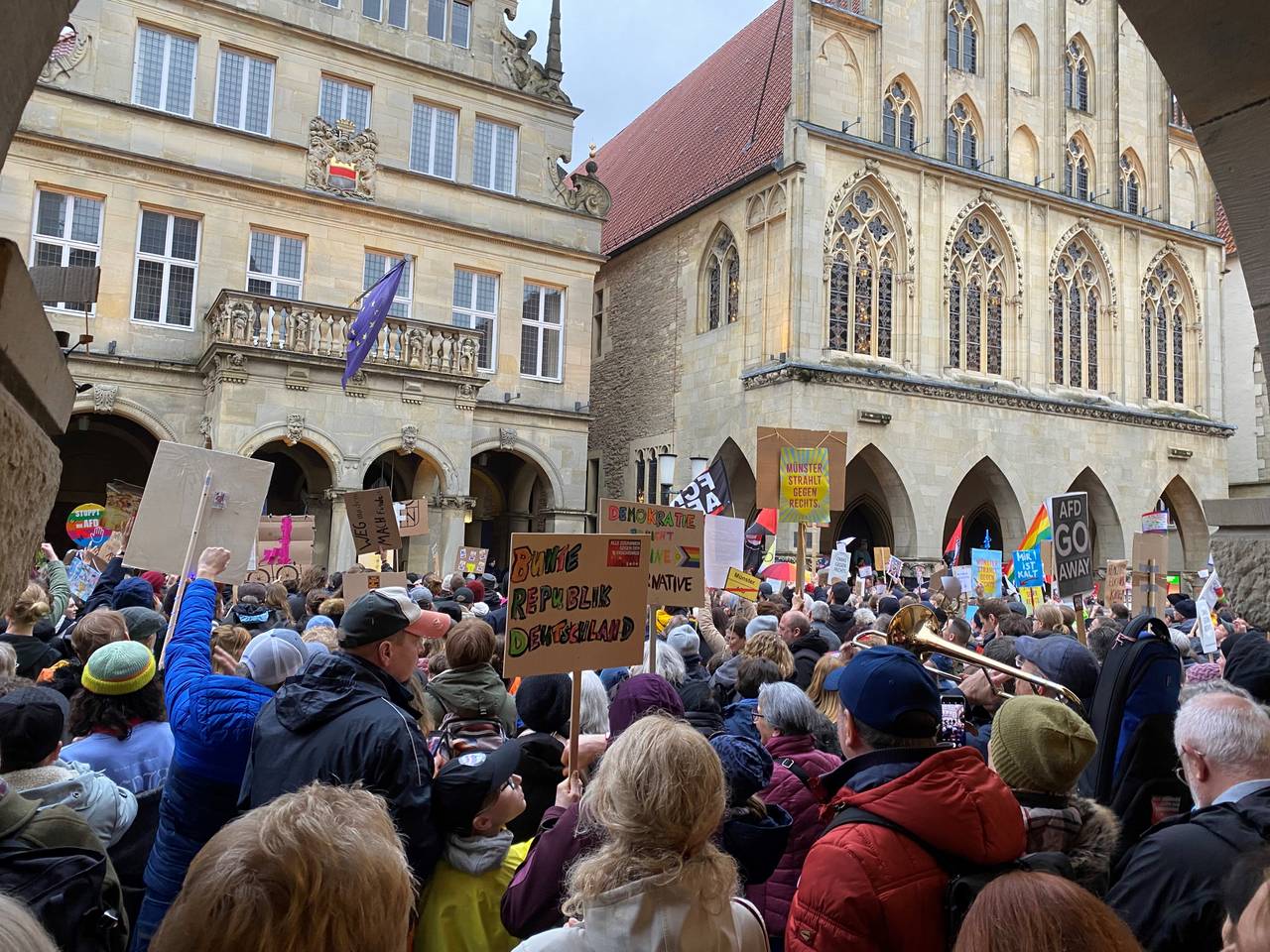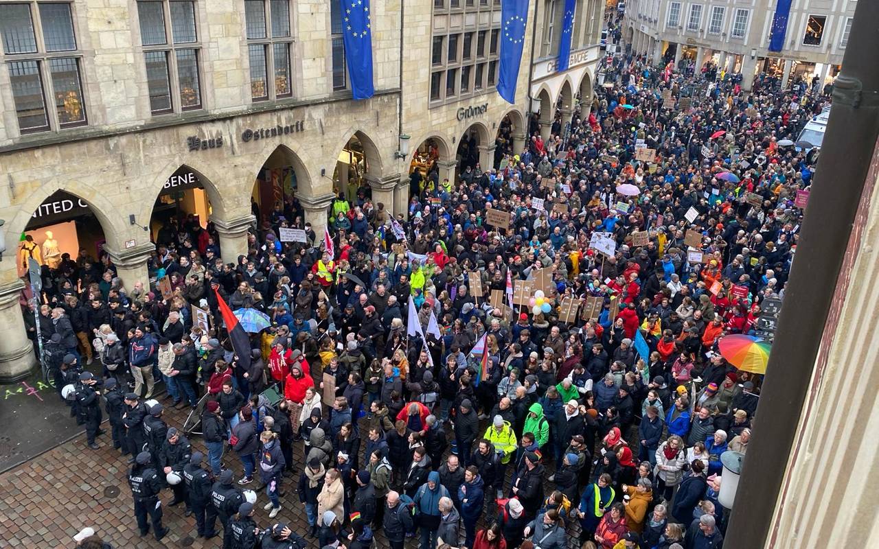 Mehr als 30.000 Menschen haben gegen den AfD-Neujahrsempfang protestiert. Es war die größte Demo der jüngeren Stadtgeschichte in Münster.