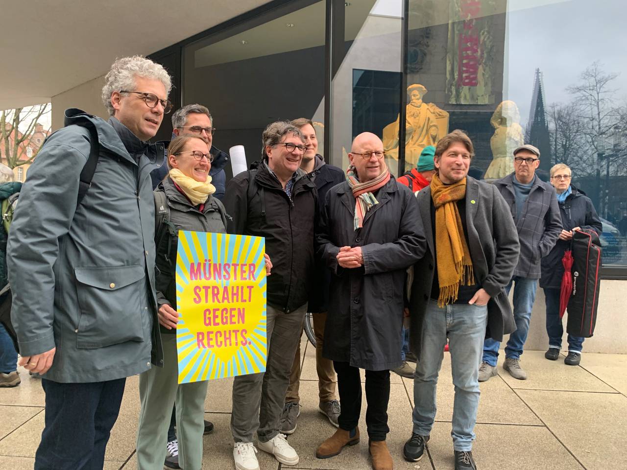 Das hat sogar die große "Fridays for Future"-Demo von 2019 mit 25.000 Teilnehmern getoppt: Mehr als 30.000 Menschen haben am Freitag (16.02.) in Münster für die Demokratie und gegen Rechtsextremismus demonstriert. Dem Aufruf der Initiative "Keinen Meter den Nazis" hatten sich zahlreiche Gruppen, Verbände, Parteien und rund 30 Bürgermeister aus mehreren Orten im Münsterland angeschlossen. Auslöser der Proteste zwischen Lambertikirche und Prinzipalmarkt war der Neujahrsempfang des AfD-Kreisverbandes Münster im Rathaus, wo es nur etwa 100 der 175 eingeladenen Gäste gelungen ist, hereinzukommen.