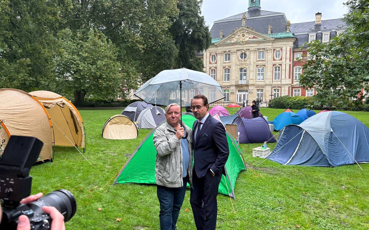 Im Regen steht das Team des "Münster-Tatort" gerade wieder vor der Kamera. In der Episode "Ich gestehe" geht es um studentische Wohnungsnot.