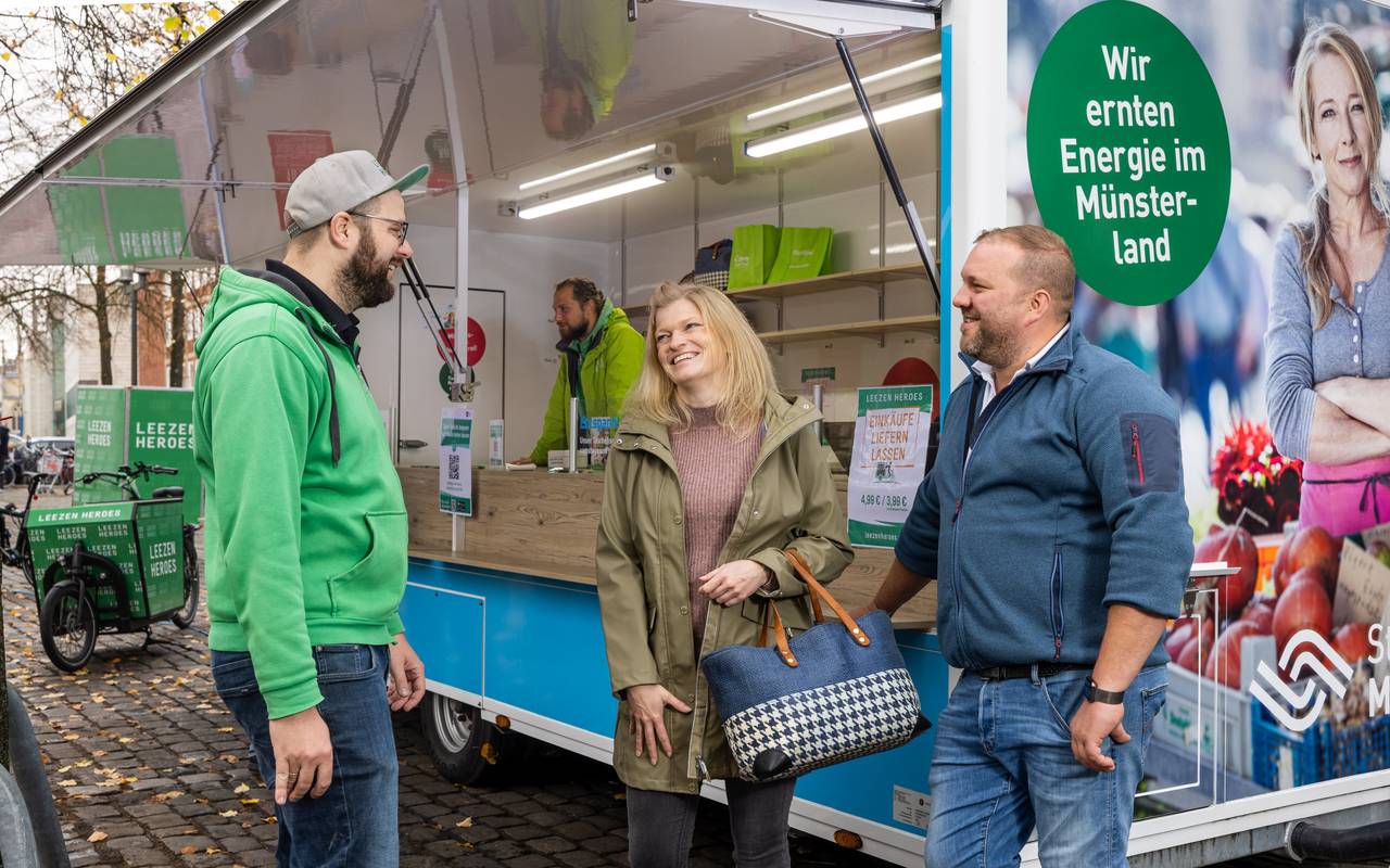 Den Taschenwagen kennen und schätzen viele Besucherinnen und Besucher des Wochenmarktes auf dem Domplatz als praktisches Angebot, um die Einkäufe zwischenzulagern. Gemeinsam erweitern die Marktbeschicker, die Stadtwerke und Leezen Heroes den Service am Taschenwagen nun um einen Lieferservice. Besonders praktisch ist das für alle, die mit dem Rad oder per Bus zum Markt gefahren sind und nach dem Einkauf noch durch die Stadt bummeln, ins Museum gehen oder Münsters gastronomische Angebote ausprobieren möchten.