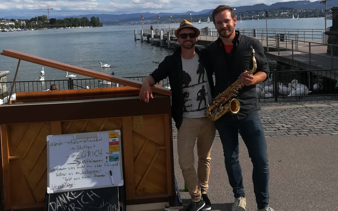 Die beiden Münsteraner Marcel und Freek machen einen Roadtrip durch Europa. Das Geld verdienen sie unterwegs mit Straßenmusik.