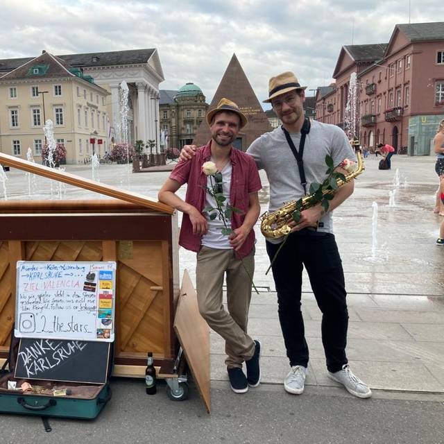 In diesen Sommerferien wollen Marcel und Freek gleich zwei Wochen unterwegs sein. Von Münster aus geht's über Köln, Luxemburg und Frankreich bis zur Mittelmeerküste nach Spanien. Sie freuen sich auf ihr nächstes Abenteuer und sind gespannt, was die Reise für sie bereit hält. Tagsüber spielen sie ihre Versionen von Jazz- und Popklassikern in den Innenstädten, abends und nachts wird geschlafen oder weitergefahren. Wir wünschen den beiden eine gute Zeit!
