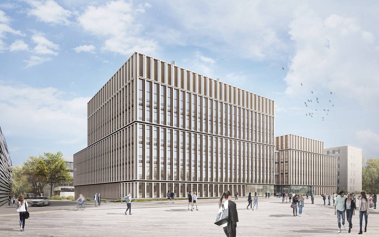 Hinter der Mensa 2 entsteht ein Neubau für die Physik an der Uni Münster. Heute Vormittag (28.06.) wird der erste Spatenstich gesetzt.