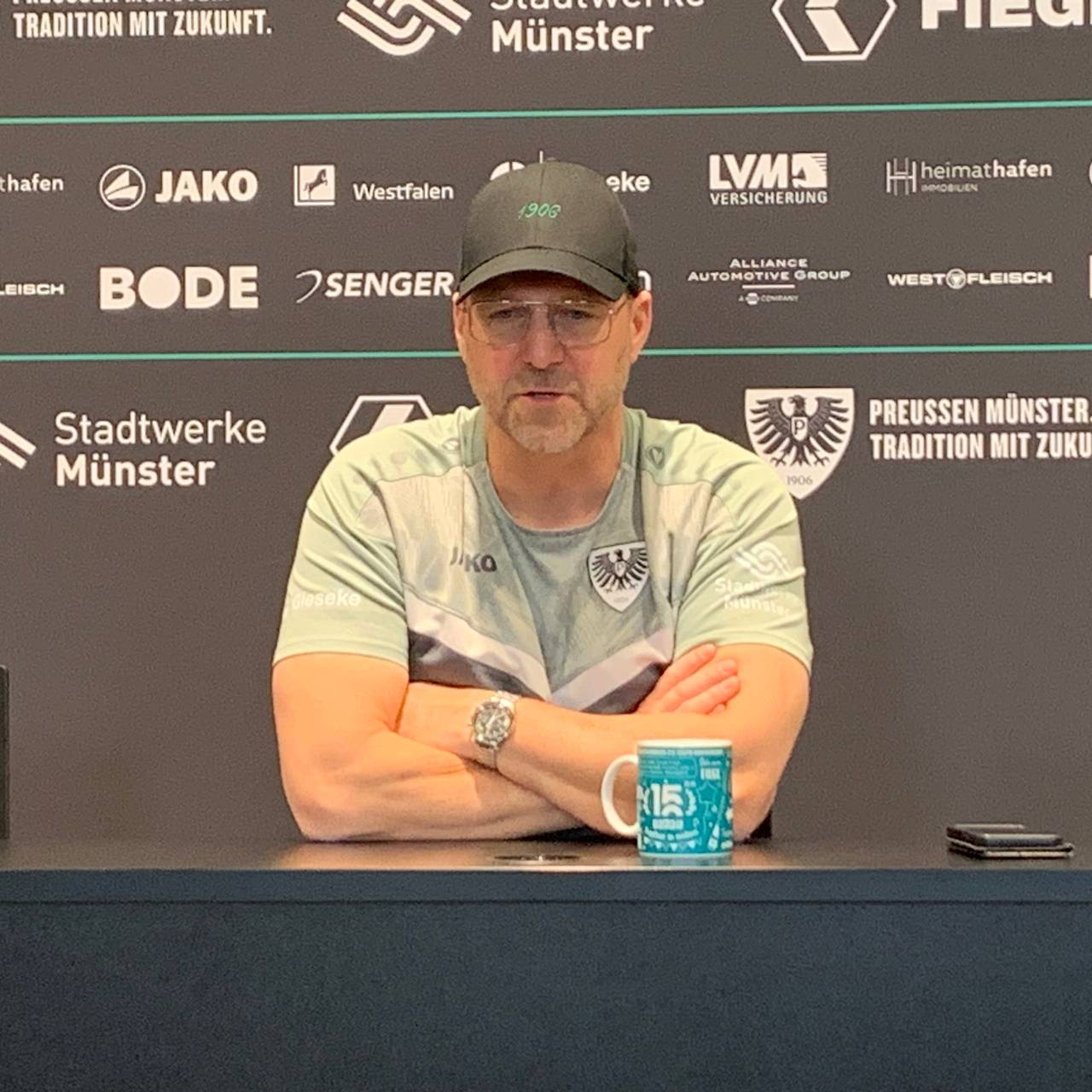 Bei seiner Mannschaft freute sich der Preußen-Coach vor allem über drei Rückkehrer: "Erfreulicherweise sind mit Luca Bazzoli, Etienne Amenyido und Daniel Kyerewaa drei Jungs zurück, auch Andras ist wieder da. Dadurch haben wir mehr Kader-Möglichkeiten." Im Gegenzug fehlte Joel Grodowski krankheitsbedingt.