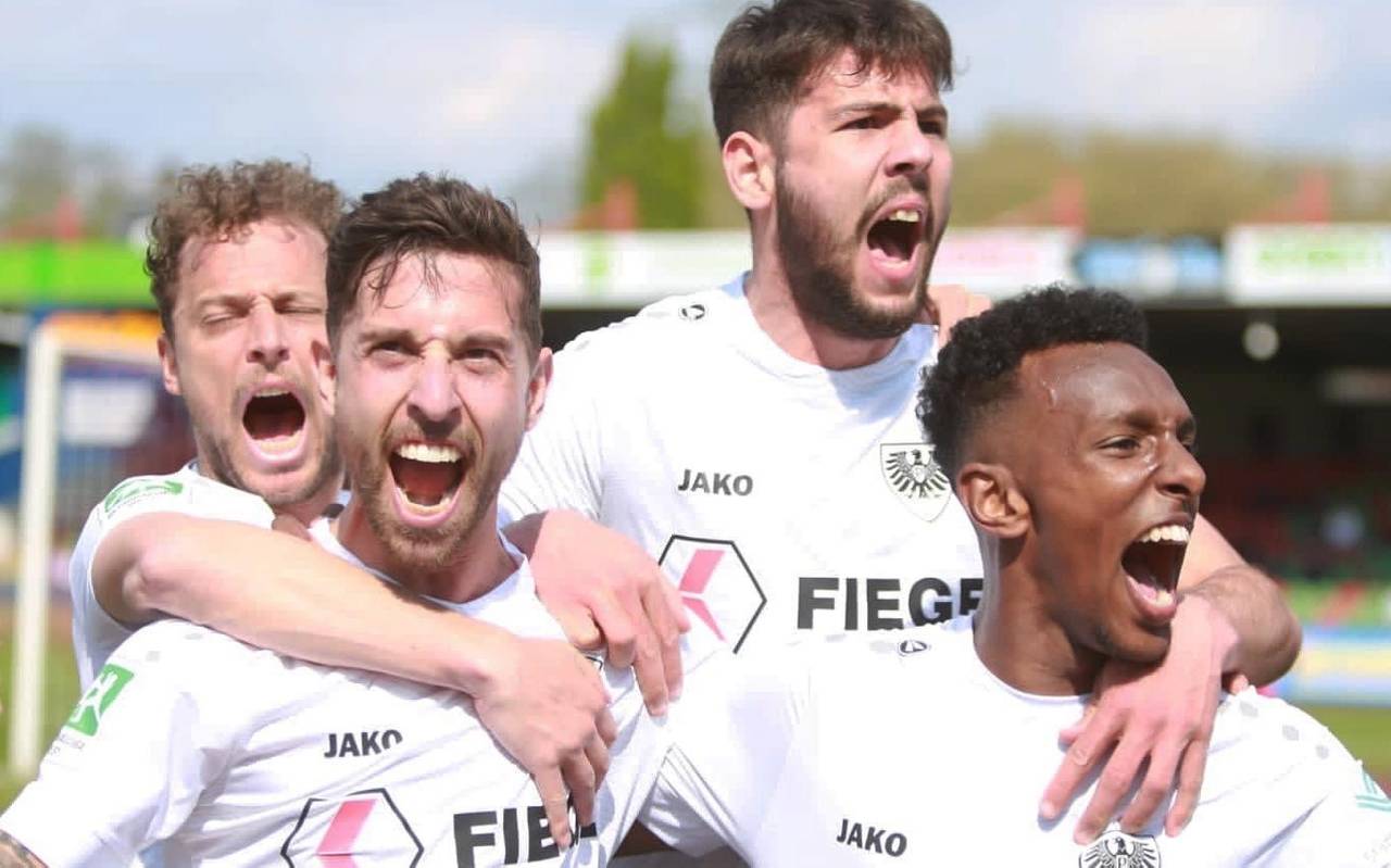 Die Münsteraner haben damit am 35. Spieltag einen weiteren wichtigen Schritt in Richtung Aufstieg in die 3. Liga gemacht. Souverän und auch in dieser Höhe verdient gab es einen 3:0-Sieg in Oberhausen. Die Tore erzielten Jules Schwadorf (20.), Henok Teklab per Foulelfmeter (75.) und Deniz Bindemann (80.). In der Tabelle sind die Preußen nun mit 80 Punkten wieder Tabellenführer mit zwei Punkten Vorsprung vor Rot Weiß Essen.