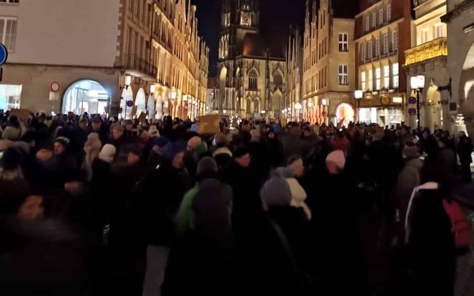 Es kommen die Bürgermeister:innen aus Coesfeld, Billerbeck, Drensteinfurt, Warendorf, Havixbeck, Altenberge, Sendenhorst, Oelde, Everswinkel, Ascheberg, Senden, Telgte und Ostbevern. Vor dem Hintergrund "Demokratie braucht keine Alternative" wollen auch sie am Freitag nächster Woche ein gemeinsames Zeichen gegen Rechtsextremismus und für den Schutz der Demokratie setzen - so, wie es zuletzt 20.000 Menschen Mitte Januar in Münster (Foto oben) getan haben.