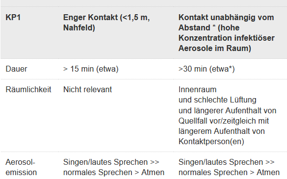 -->Viruspartikel können sich in Aerosolen bei mangelnder Frischluftzufuhr in Innenräumen anreichern, weil sie über Stunden in der Luft schweben können. Vermehrungsfähige Viren haben (unter experimentellen Bedingungen) eine Halbwertszeit von etwa 1 Stunde. In einer solchen Situation mit hoher Konzentration infektiöser Viruspartikel im Raum sind auch Personen gefährdet, die sich weit vom Quellfall entfernt aufhalten