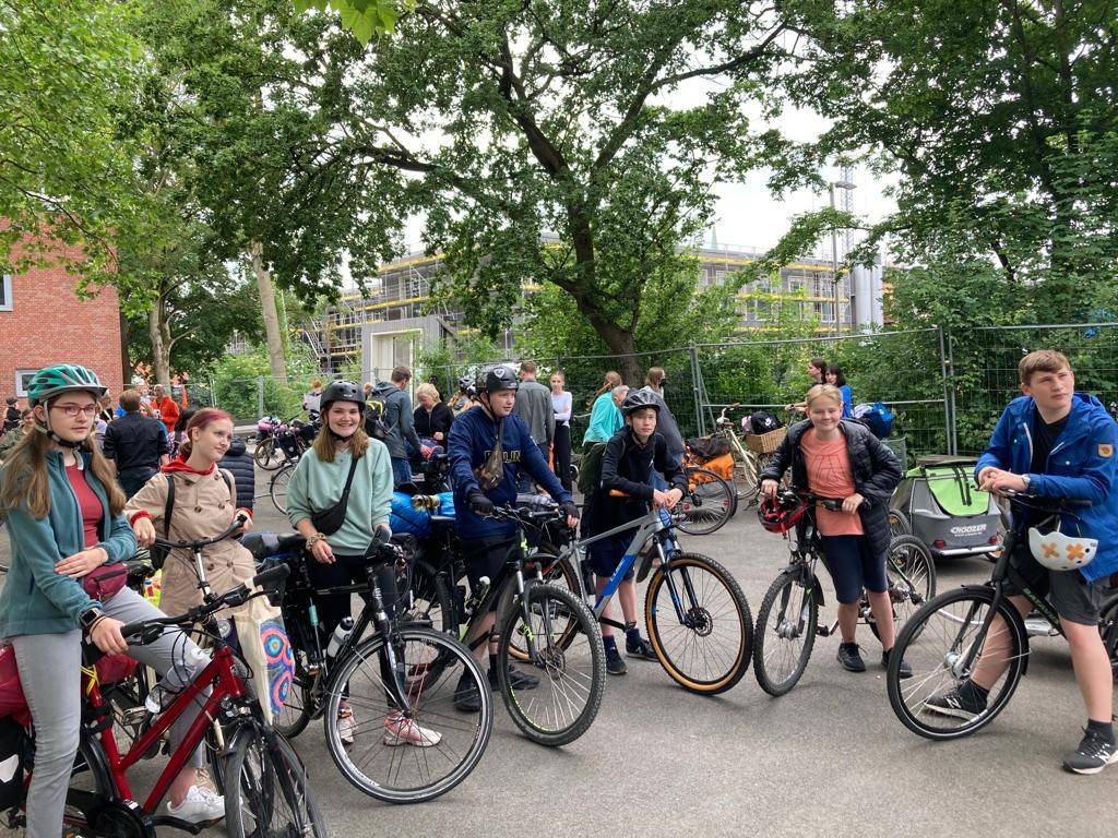 Gut 100 Schüler:innen der Mathilde-Anneke-Gesamtschule starten heute in ihre "Herausforderung": Eine Woche mit dem Fahrrad raus aus Münster - und dabei möglichst kein Geld ausgeben.