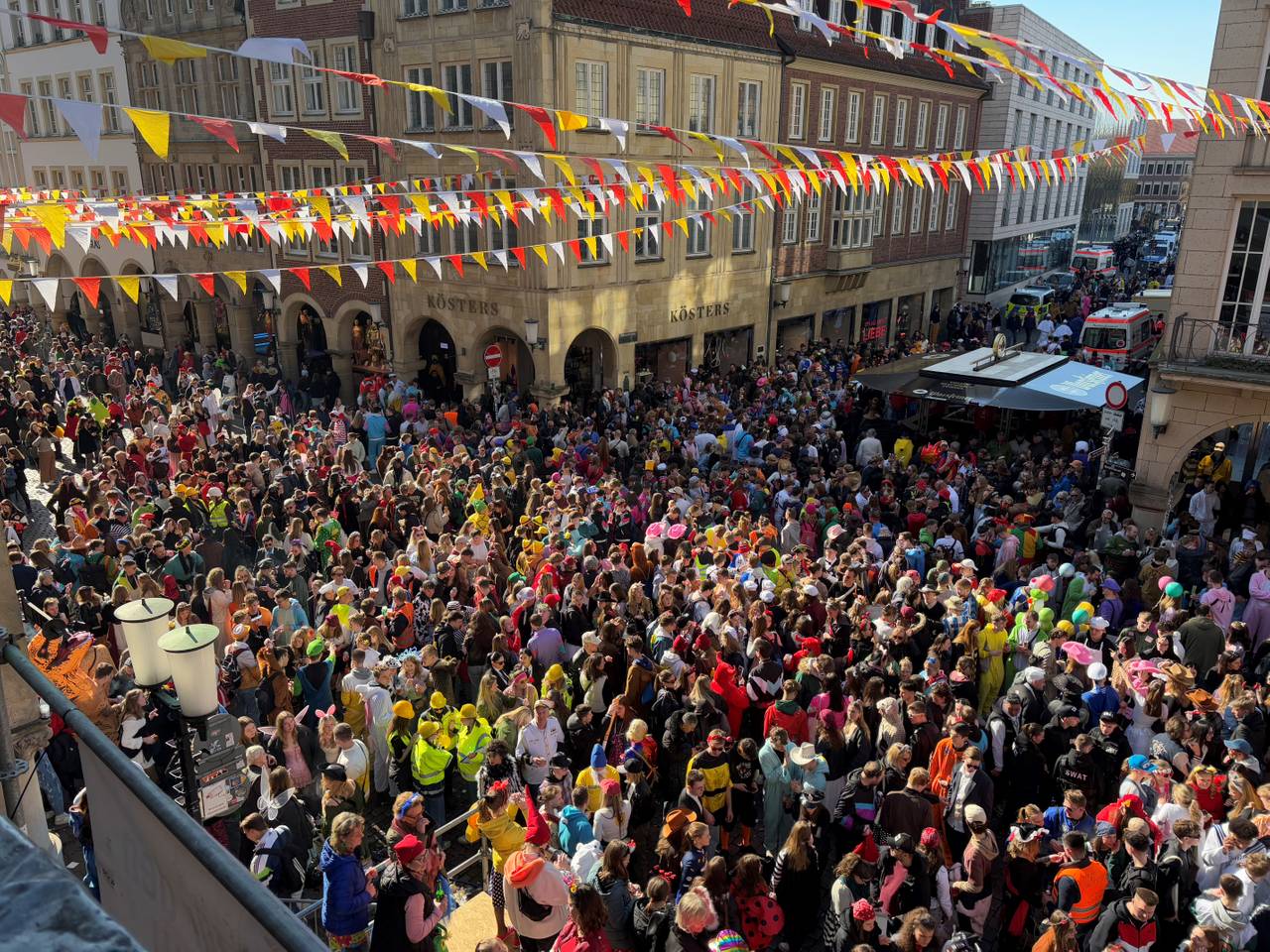 Am meisten los ist auf dem Prinzipalmarkt. Hier gab es schon seit 12 Uhr die passende Musik, Bierstände und Essensbuden. Der Umzug kam hier gegen 15:30 Uhr an.