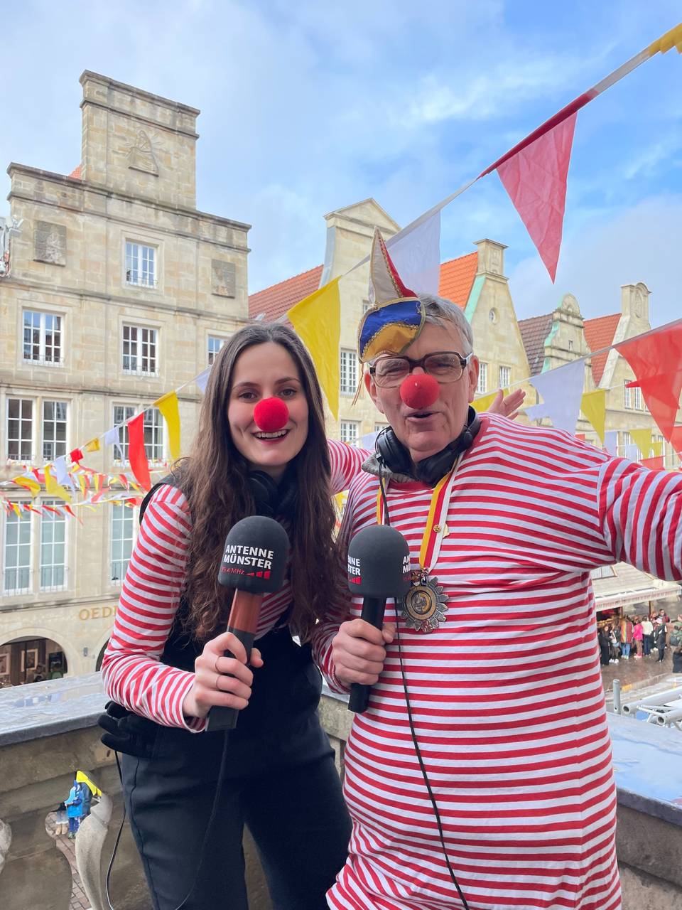Na klar! Auch in diesem Jahr haben die ANTENNE MÜNSTER Reporter:innen Lena Zils und Matthias Menne wieder vom Sentenzbogen am Prinzipalmarkt berichtet und versorgten euch mit Infos und spannenden Geschichten rund um den Rosenmontagsumzug.