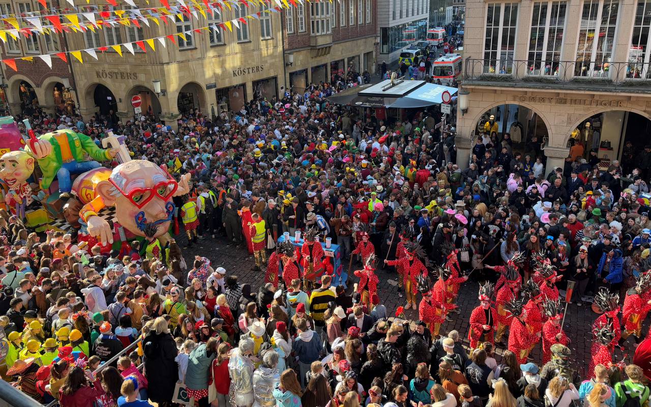 Nach ersten Schätzungen der Polizei haben 80.000 Menschen beim Rosenmontagszug in Münster gefeiert. Das waren weniger als in den vergangenen Jahren. Im vergangenen Jahr waren 111.000 Närrinnen und Narren dabei. Bisherigen Berichten zufolge ist in Münster alles friedlich und fröhlich geblieben.