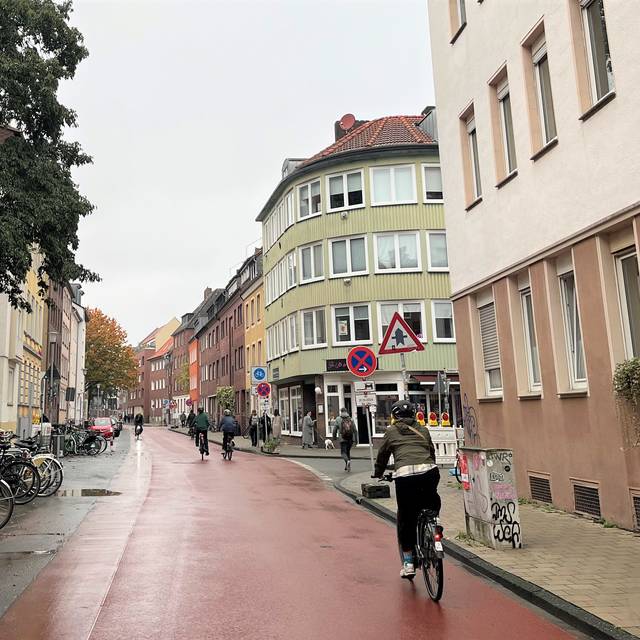 Den Umbau der Schillerstraße hat der Ausschuss für Verkehr und Mobilität im Herbst 2023 beschlossen. Vorausgegangen war ein umfassender Beteiligungsprozess: Bürger:innen konnten im Rahmen einer Infoveranstaltung oder eines Quartiersspaziergangs eigene Anregungen einbringen. Ein 40 Meter langes Teilstück wurde im Frühjahr 2023 für einen kurzen Zeitraum umgestaltet, damit sich Anwohner:innen einen Eindruck von der geplanten Gestaltung machen konnten. Zukünftig erfüllt die Schillerstraße als Fahrradstraße Plus die hohen Qualitätsstandards, die das Fahrradnetz 2.0 für Velorouten vorsieht. So leistet die Maßnahme einen wichtigen Beitrag dazu, nachhaltige und stadtverträgliche Mobilitätsstrukturen zu schaffen. Diese Ziele hält der Masterplan Mobilität Münster 2035+ fest.