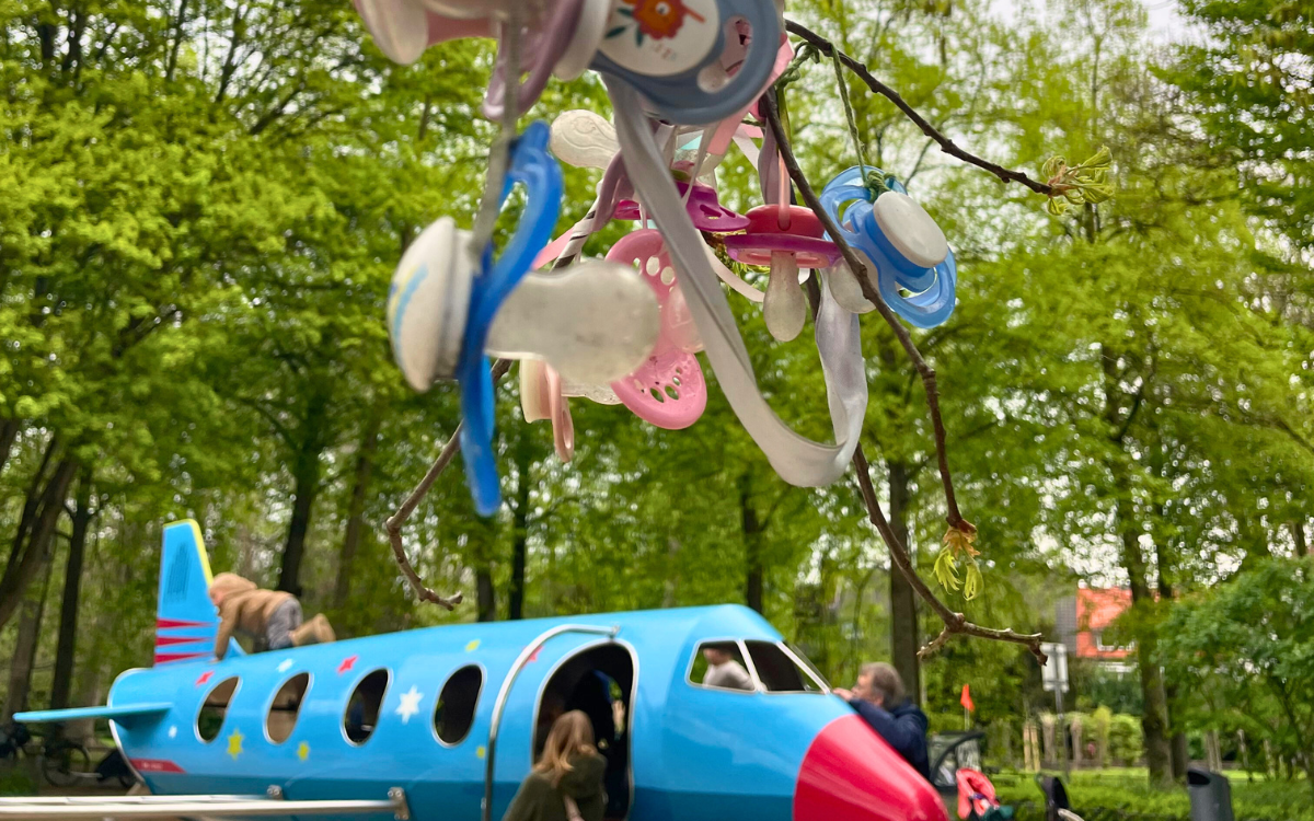 Kinder können sich, gemeinsam mit ihren Eltern, von ihrem Schnuller verabschieden. Der Nuckel wird in den Schnullerbaum am Coerdeplatz gehängt.