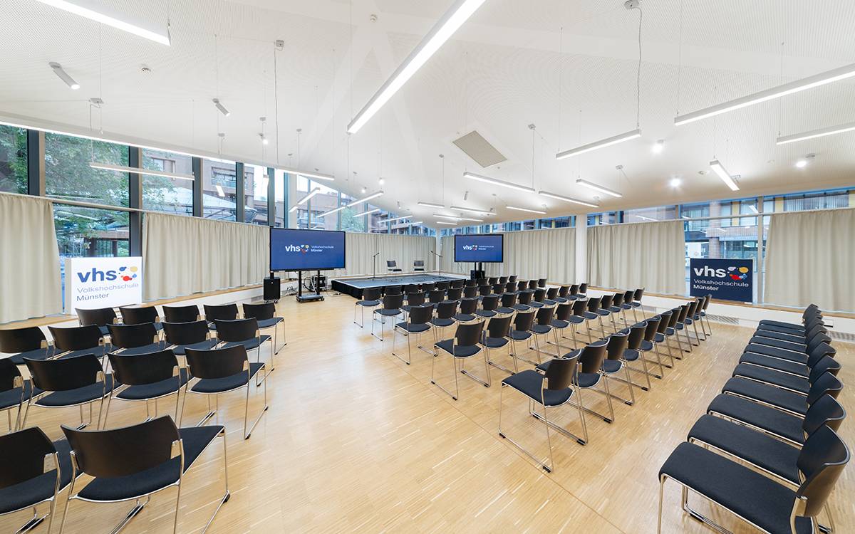 Am Samstag (16.11.) übergibt Oberbürgermeister Markus Lewe offiziell die sanierte VHS. Gleichzeitig können alle Münsteraner:innen beim Tag der offenen Tür das Programm kennenlernen.