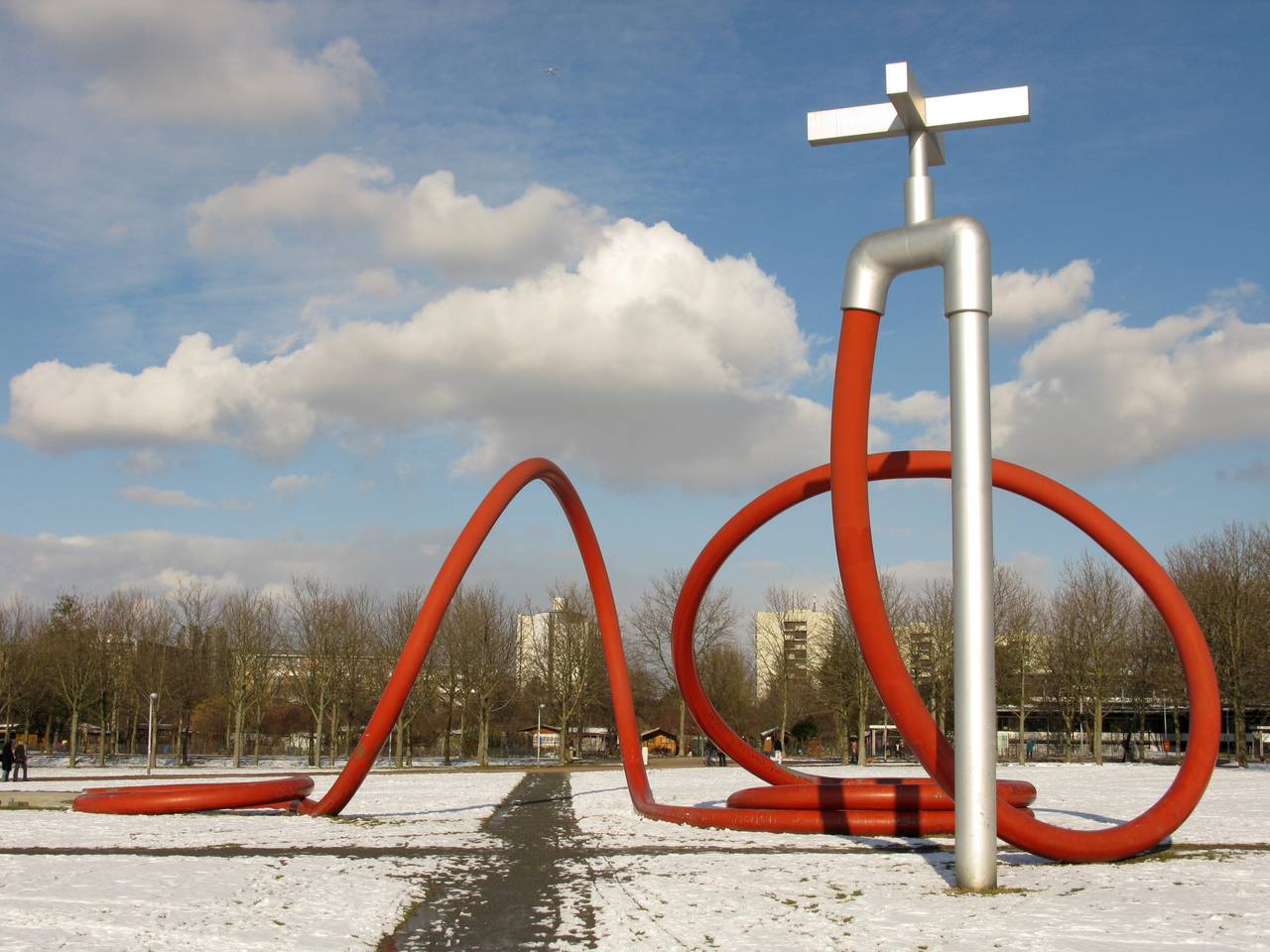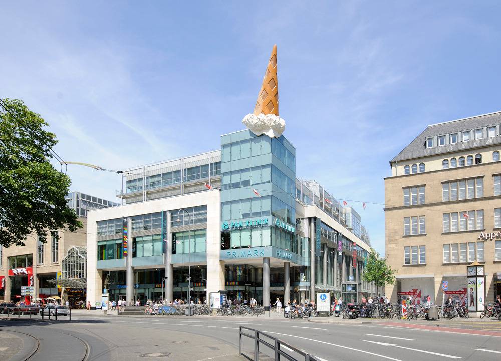Claes Oldenburg installierte zahlreiche weitere große Skulpturen in ganz Deutschland. In Kassel haute der mehrfache documenta-Künstler eine zwölf Meter hohe Spitzhacke in das Fulda-Ufer. In Frankfurt war es eine fast so hohe Krawatte, in Köln eine Eistüte und in Freiburg ein Wasserhahn mit Schlauch.