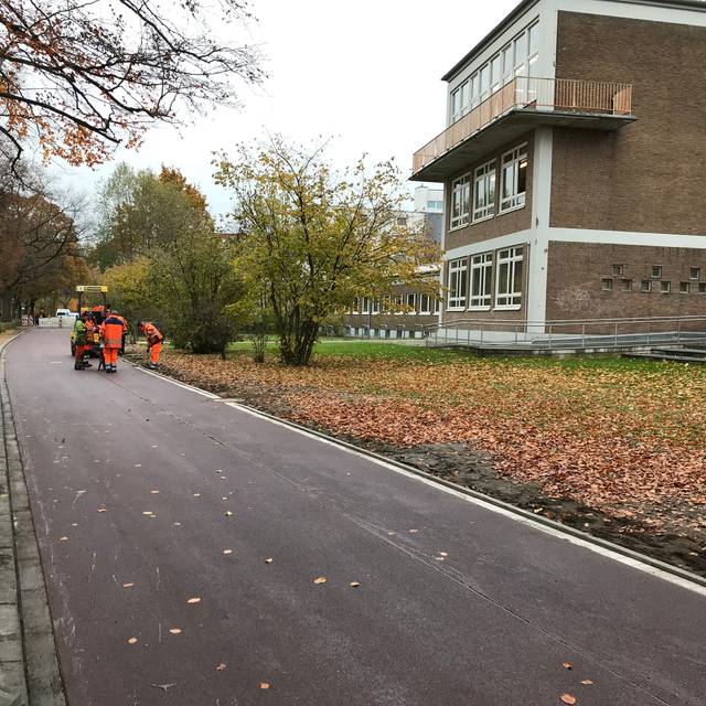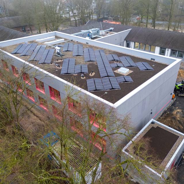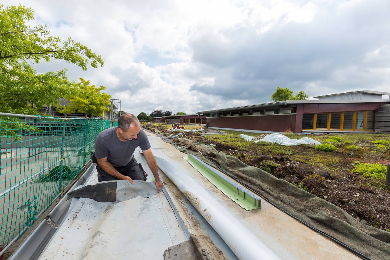 An der Mosaikschule in Gievenbeck erhält diesen Sommer - während parallel die Erweiterungsarbeiten auf Hochtouren laufen - auch der Bestandsbau einen neuen Anstrich. Dabei werden rund 550 Quadratmeter Holzfassade, 135 Holzfenster im Erd- und Obergeschoss sowie die Dachüberstände neu gestrichen. Neben der optischen Aufwertung des Gebäudes schützt die Farbe auch vor Witterungseinflüssen. Auch Teile des Flachdaches werden saniert, so lässt die Stadt unter anderem den Dachrand neu abdichten.