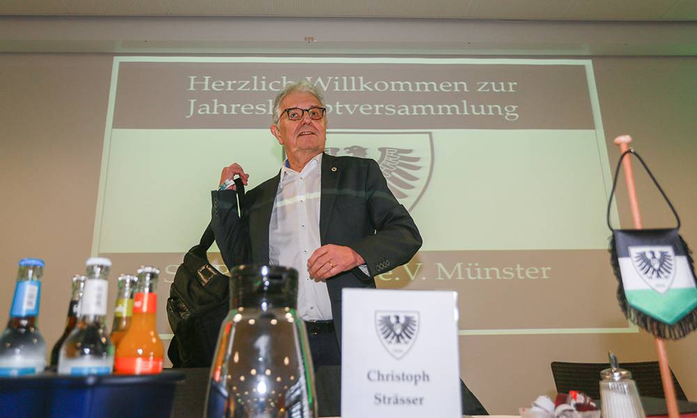 "Wir sind Christoph Strässer außerordentlich dankbar, dass er vor sechs Jahren in sehr herausfordernden Zeiten die Verantwortung übernommen und den Adlerclub gemeinsam mit seinen Mitstreitern auf Kurs gehalten hat. Er hat maßgeblich zur Konsolidierung des Vereins beigetragen und wichtige Richtungsentscheidungen wie beispielsweise die Ausgliederung forciert. In ganz besonderem Maße hat sich Christoph Strässer für einen Stadion-Neubau eingesetzt und die entscheidenden Weichen gestellt, dass ein neues Stadion in Münster realisiert wird“, würdigt der Aufsichtsratsvorsitzende Frank Westermann die Verdienste des scheidenden Präsidenten.