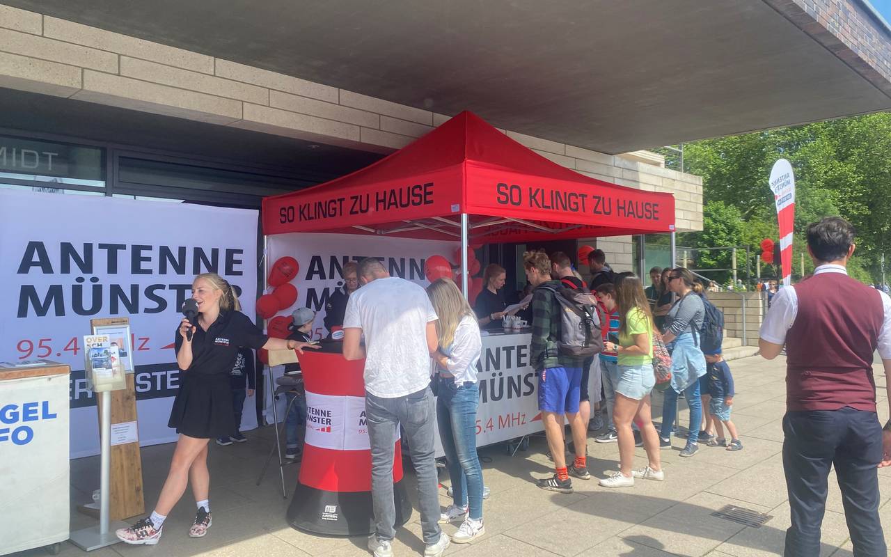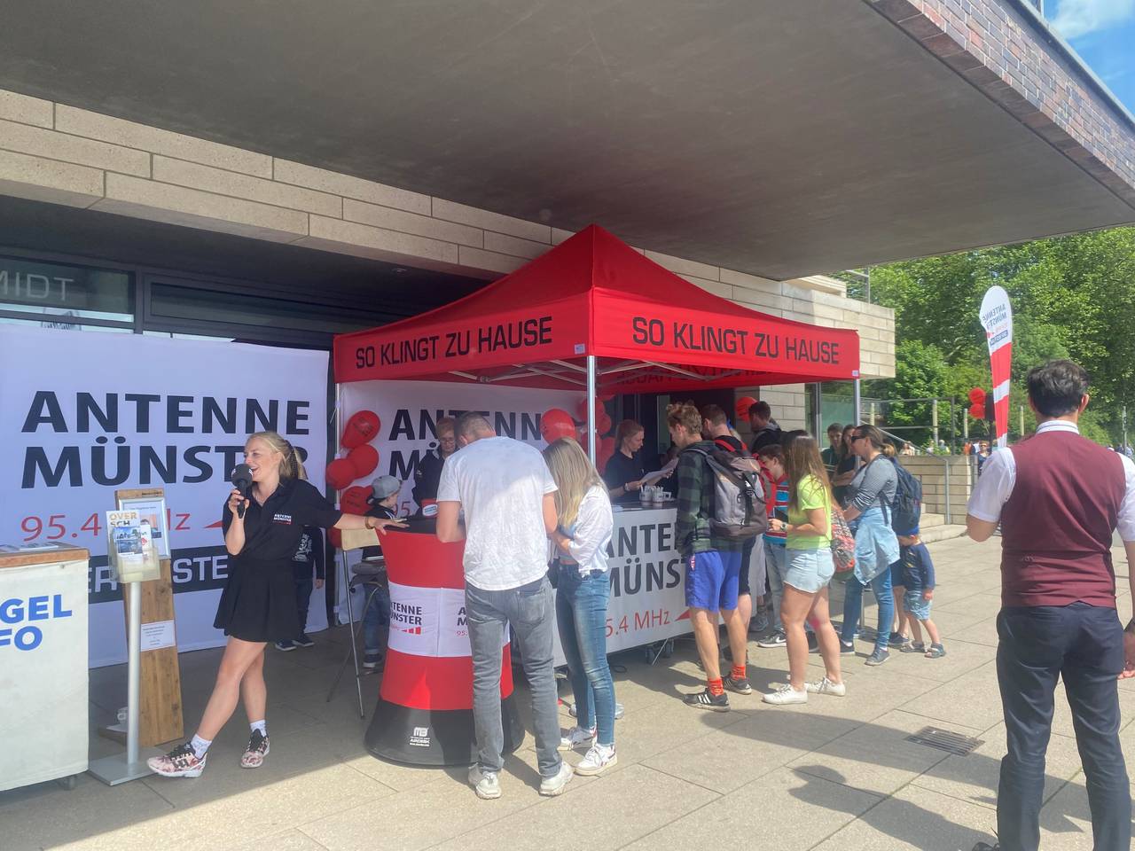 Bei ANTENNE MÜNSTER-Moderatorin Luisa Meng (Foto oben) gab es zudem jede Menge zu gewinnen. Wer sich im "Münsterquiz" gut geschlagen hat, konnte z.B. eine der begehrten ANTENNE MÜNSTER-Frühstücksboxen mit nach Hause nehmen. Hauptgewinne war ein Segelstarterpaket von der Segelschule Overschmidt. Außerdem gab es Gutscheine für's Tretbootfahrten, für’s „Paarschippern“ sowie Eintrittskarten für den Allwetterzoo.