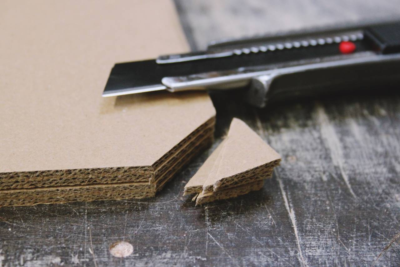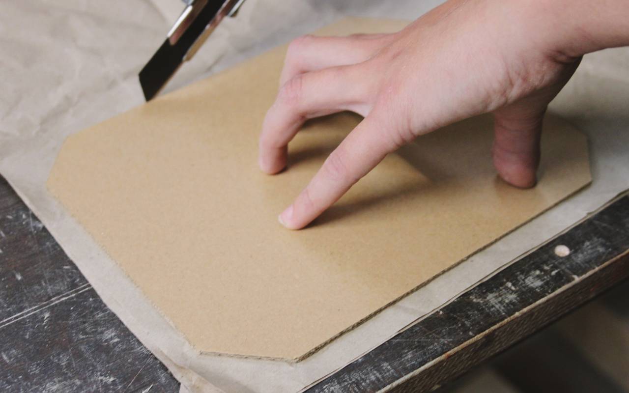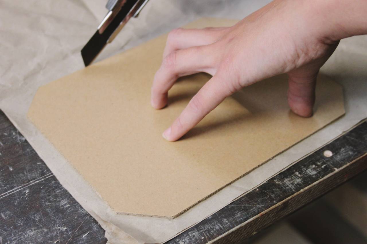 Dann schneidest du dir einige passende Papp- und Papierlagen zurecht. Meine sind 1 cm schmaler zu beiden Seiten, also 24 cm x 17 cm. Die Ecken schneidest du dann weg, sodass die Einlagen gut zwischen die Schrauben passen. Zwischen zwei Papplagen sollten zwei der saugfähigen Papiere liegen.