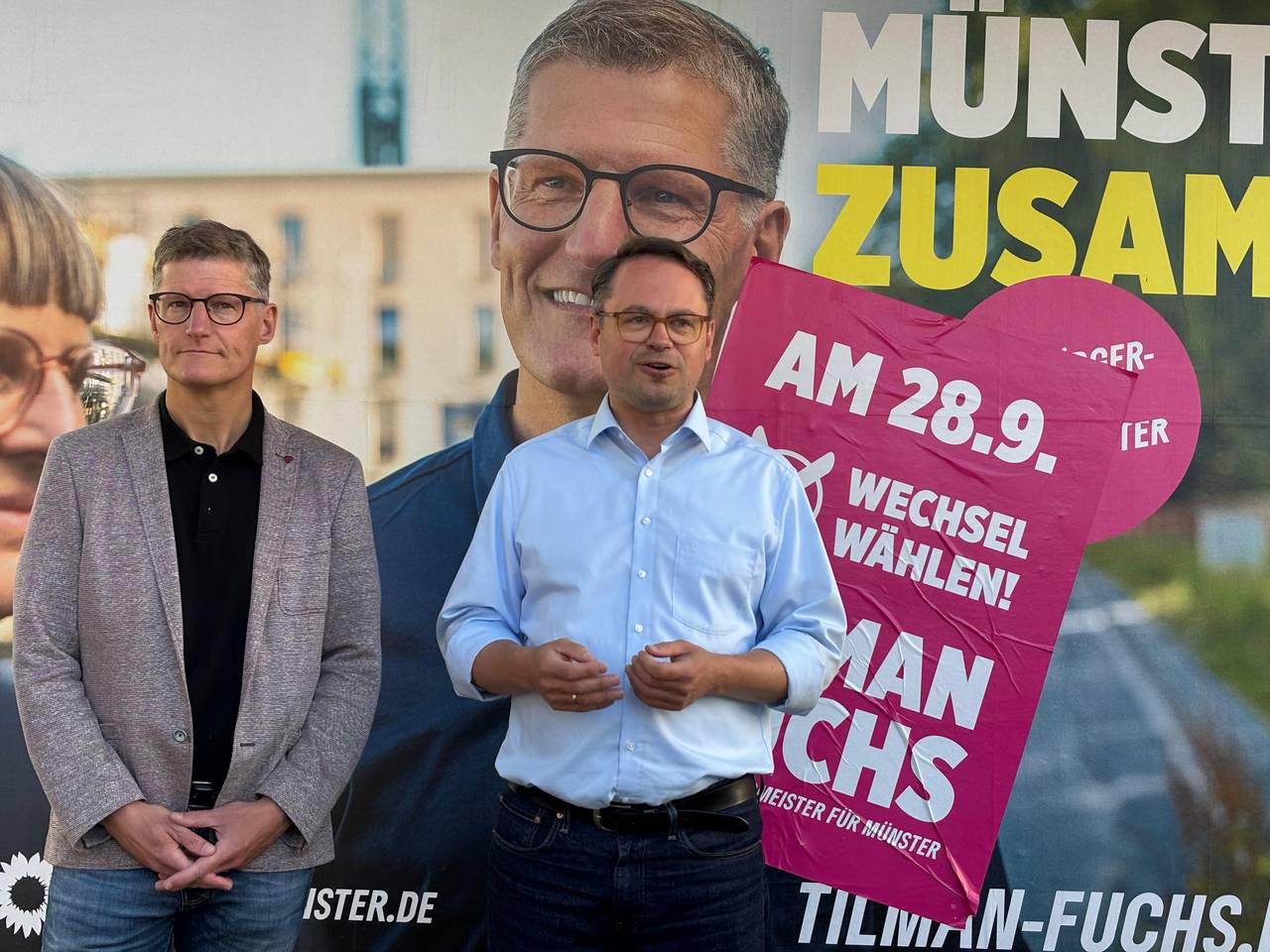 Tilman Fuchs, OB-Kandidat der Grünen, betont die gemeinsame Linie: "Die Unterstützung der SPD ist für mich ein starkes Zeichen. Wir haben einen Weg gefunden, Klimaschutz und soziale Verantwortung zusammenzubringen. Denn unser gemeinsames Ziel ist klar: Münster braucht mehr Wohnungen - bezahlbar und für alle Generationen. Gleichzeitig bleibt aber auch klar, dass wir im Angesicht der Klimakrise die Stadt klimafreundlich und nachhaltig entwickeln müssen."