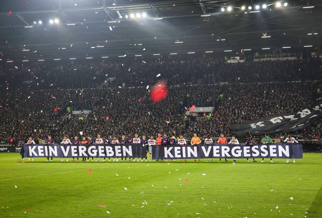 Schon vor der Partie hatten Fans anlässlich des Holocaust-Gedenktags lautstark gegen Faschismus ihre Stimme erhoben. Auf den Rängen waren Banner mit der Aufschrift «Kein Vergeben, kein Vergessen» emporgehalten worden. Auch die Spieler beider Teams hielten ein Transparent hoch.