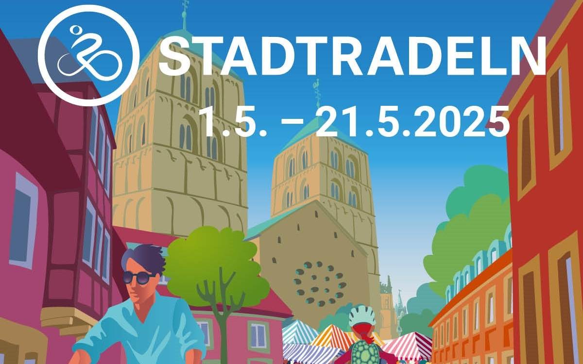 Bereits zum sechsten Mal nimmt die Stadt Münster an der Aktion Stadtradeln teil. Dieses Jahr könnt ihr wieder drei Wochen lang in die Pedale treten, vom 1. bis zum 21. Mai. Ziel der Aktion ist es, so viele Kilometer wie möglich mit dem Fahrrad zurückzulegen - anstelle des Autos. Im vergangenen Jahr beteiligten sich rund 11.100 Fahrradfahrer:innen in Münster. Insgesamt wurden 2,25 Millionen Kilometer zurückgelegt. Knapp 170 Unternehmen, zahlreiche Vereine und über 50 Schulen machten mit. Stadtradeln ist eine Kampagne der Initiative Klima-Bündnis.