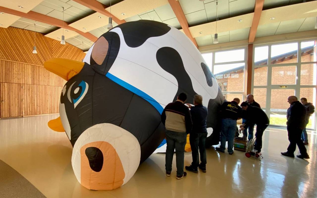 Die Aktion verfolgt ein ernstes Ziel: Die 12 Tage nach Ostern, die die Kuh in der Luft ist, können die Münsteraner:innen nutzen, um herauszufinden, wie es ist, ohne Fleischprodukte zu leben. Das ist also eine Umweltschutz-Aktion. Das CO2-Gas, das die Münsteraner:innen durch den Verzicht einsparen, hält die Kuh "Theodora" dann die knapp zwei Wochen in der Luft.