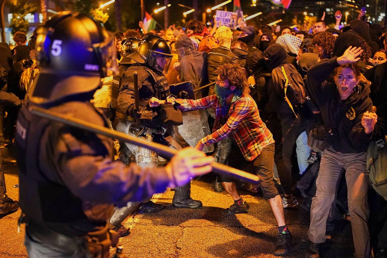 Im Fernsehen war zu sehen, wie Vermummte große Müllcontainer aus Plastik in Brand setzten und Fensterscheiben eines Cafés und eines Schnellimbisses einschlugen. Schon zuvor war es am Bahnhof Sants zu Auseinandersetzungen mit der Polizei gekommen. Demonstranten hätten dort versucht, die Basketballmannschaft von Hapolel Jerusalem am Verlassen des Bahnhofs zu hindern, berichtete der staatliche TV-Sender RTVE. Die Israelis sollten ein Spiel ohne Publikum gegen den lokalen Verein Baxi Manresa bestreiten. Die Polizei setzte Pfefferspray ein, Demonstranten warfen Flaschen und andere Gegenstände.