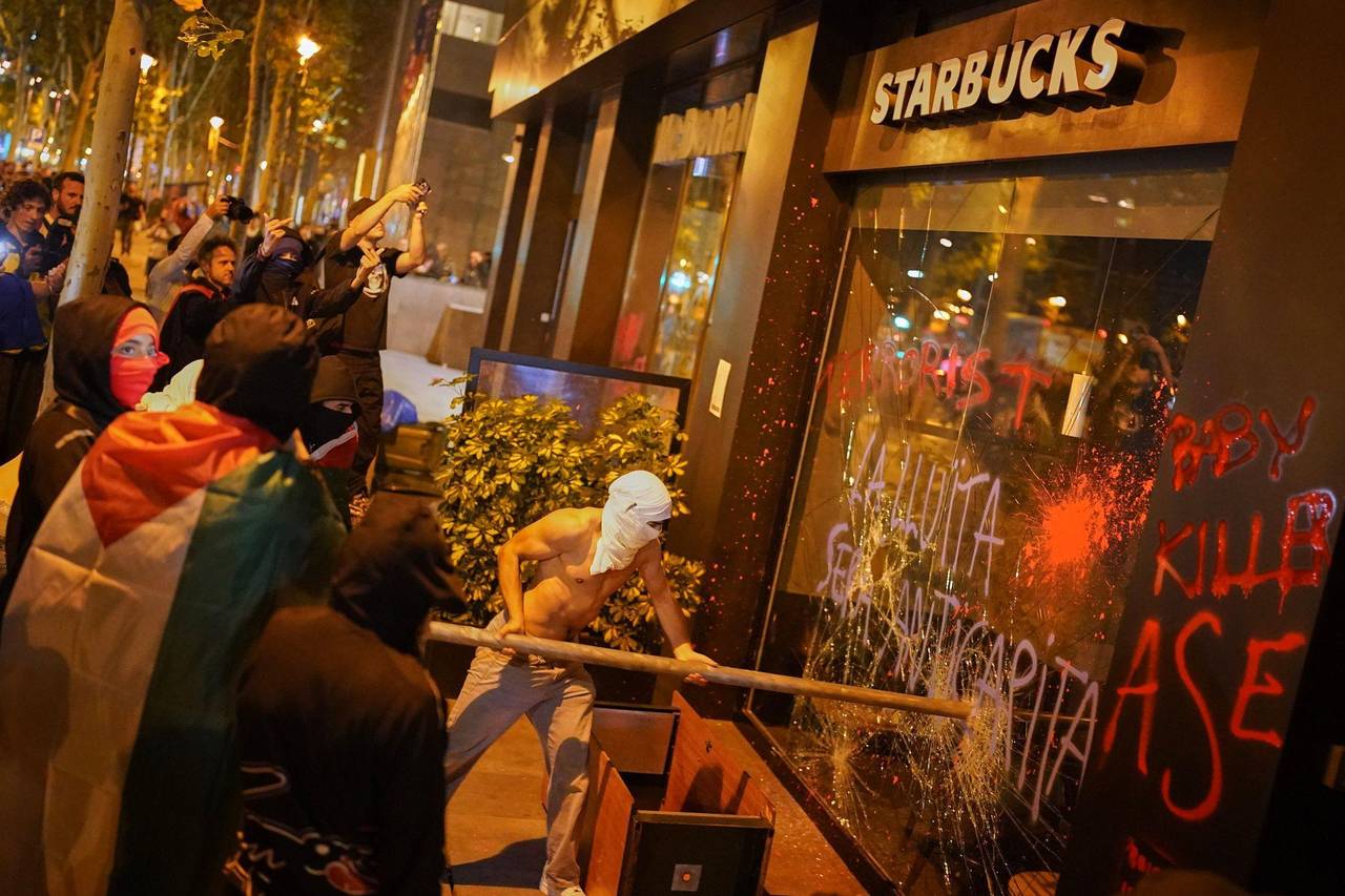Demonstranten in Barcelona griffen Geschäfte und Restaurants an, denen sie eine Unterstützung Israels vorwerfen.