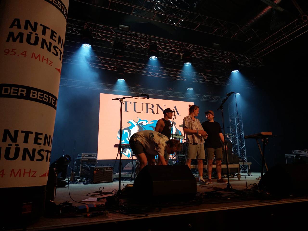 Acht Stunden lang spielten sich verschiedene Bands durch ihre Setlists, darunter auch Kaffkiez und Strahlemann. Die Party eröffnen durfte unser "Act für's JuWi-Fest", die Band TURN A. Neben den Acts auf den Bühnen gab es zudem eine Outdoor-Lounge mit Getränketheken, Cocktailbars und Foodtrucks.