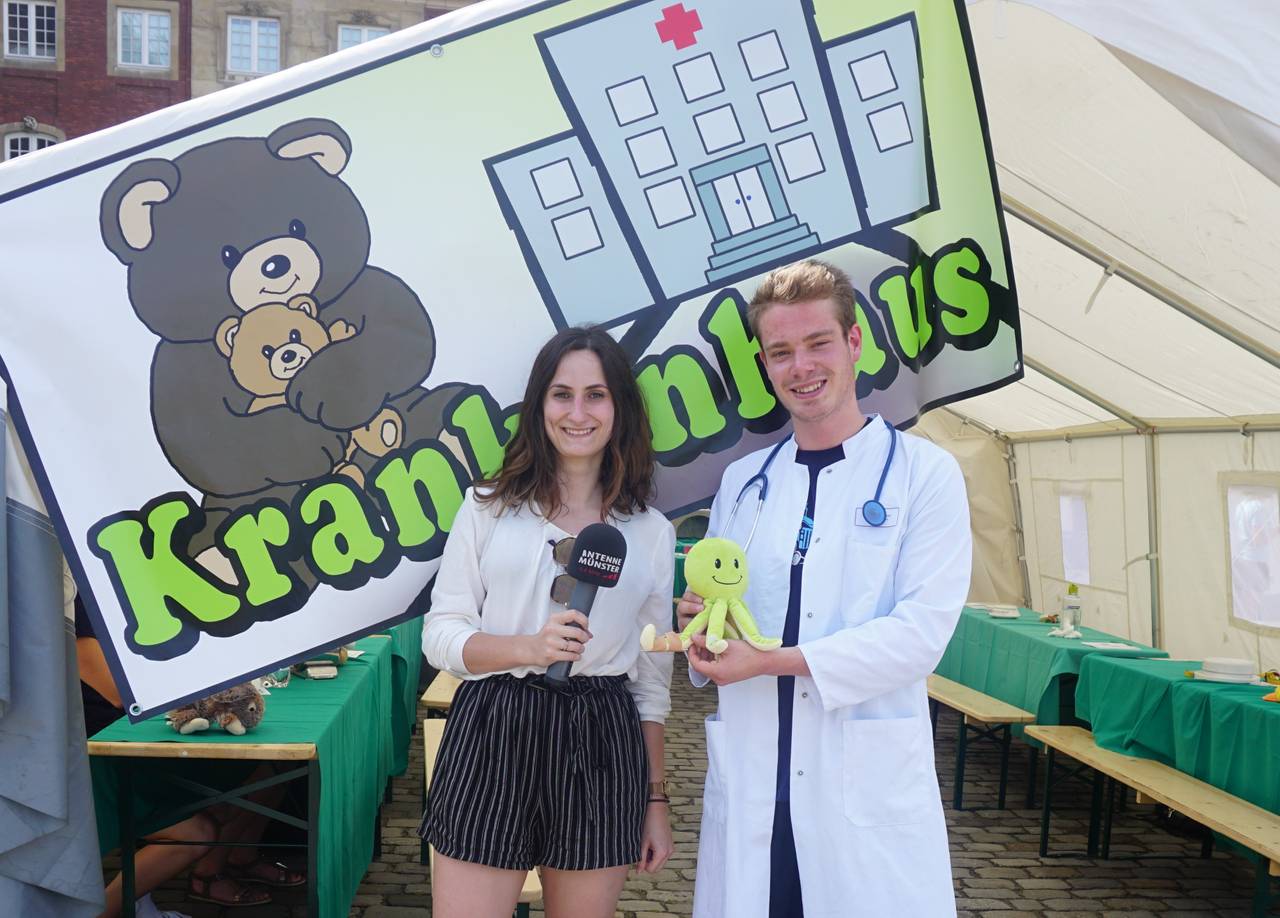 Das Teddybärkrankenhaus kam uns gerade Recht: Unsere Stoffkrake Kommissar Ärmchen wollte sich unter allen acht Tentakel-Achseln Deo auftragen und hat sich dabei blöd verdreht. ANTENNE MÜNSTER-Reporterin Lena Zils hat ihn ins Teddybärkrankenhaus gebracht. Nach ein bisschen Schmerzmittel geht's ihm auch schon viel besser!