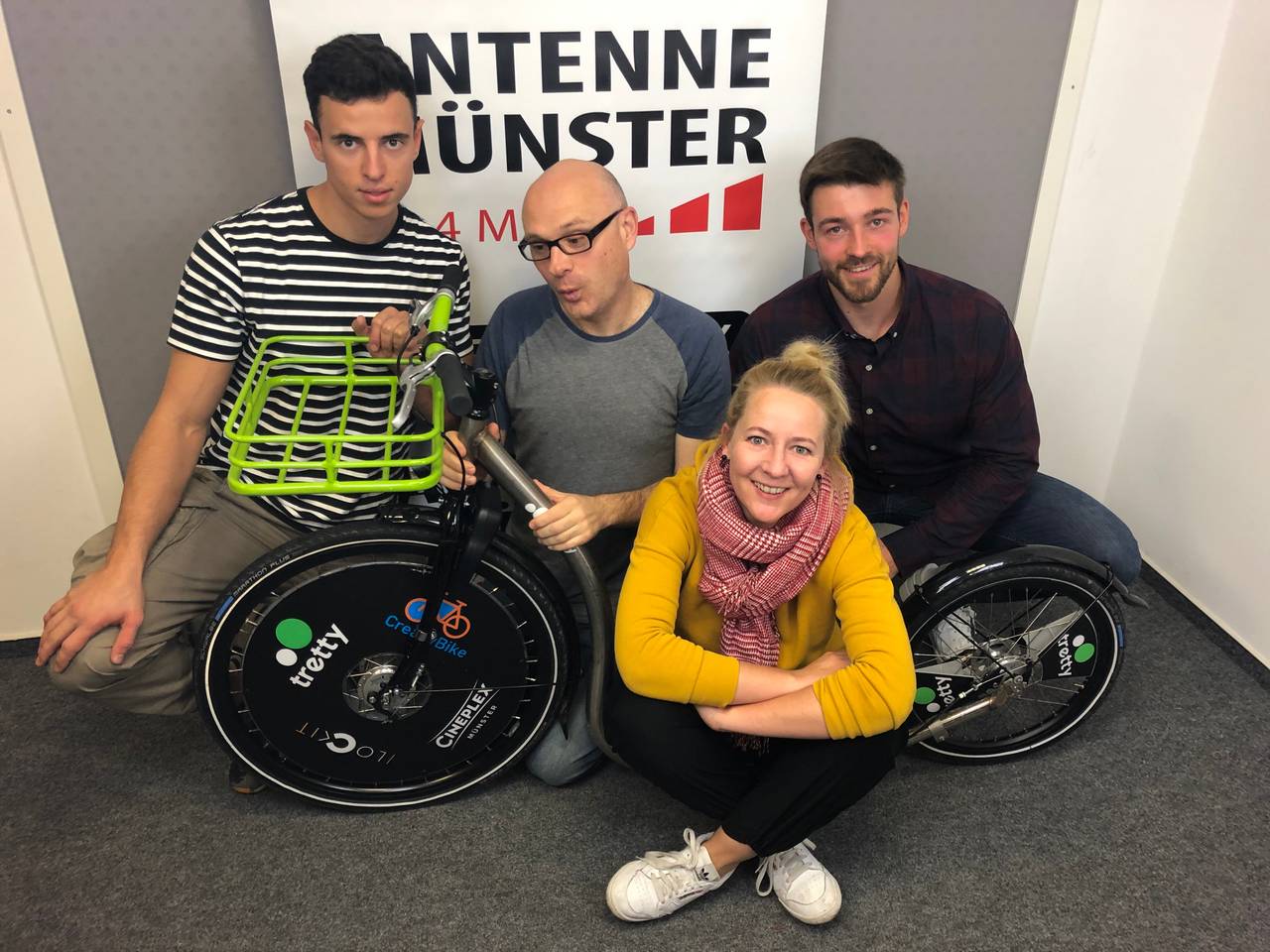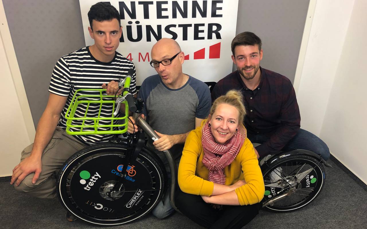 Im November war die Crowdfunding-Kampagne für ein neues Sharing-System in der Stadt gestartet worden. Das Ziel ist jetzt erreicht: Ab Frühjahr können wir uns Tretroller ausleihen, die ohne Batterie oder Akku, sondern nur per Muskelkraft betrieben werden. Zum Start waren am 07.11. die beiden Gründer bei uns in der ANTENNE MÜNSTER-Morningshow zu Gast.