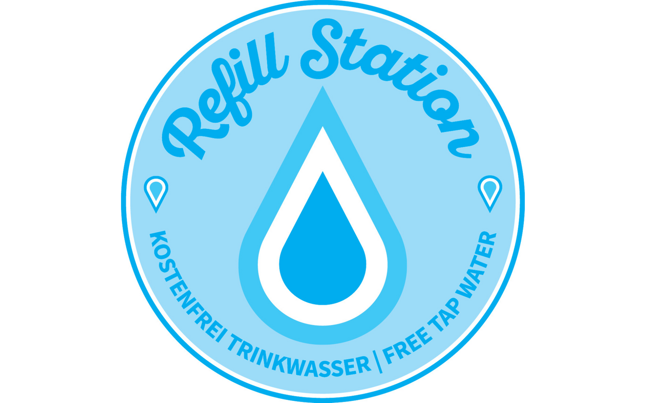 Kostenloses frisches Trinkwasser gibt es in Münster auch an sogenannten Refill-Stationen. Da machen bei uns schon fast 50 Läden und Einrichtungen mit und es werden immer mehr. Erkennbar sind diese Refill-Stationen am blauen Logo, das in die Schaufenster und Türen geklebt ist. Dort kann man sich die eigene Trinkflasche auffüllen lassen.