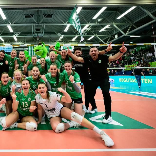 Vor 2.800 Zuschauern in der ausverkauften Halle Berg Fidel brauchten Münsters Volleyballerinnen nur 74 Minuten, um den Sieg unter Dach und Fach zu bringen. Zittern musste der USC nur im dritten Satz, als er mit 10:16 in Rückstand geriet. Aber mit einem Zwischenspurt stellte Münster auf 18:18 und wehrte auch zwei Satzbälle ab. Der Rest war minutenlanger Jubel. Als MVP des Spiels wurde Münsters Libera Lara-Marie Schaefer ausgezeichnet.