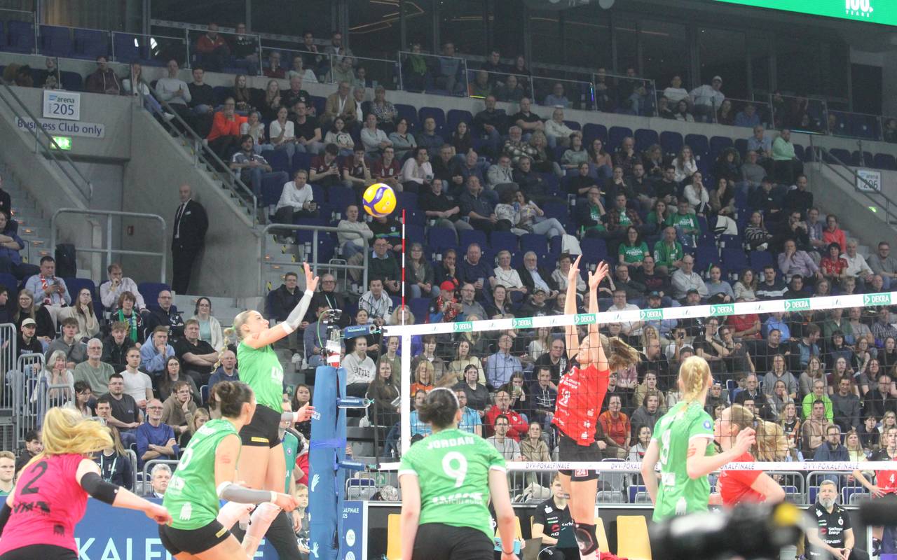 Blitzstart des USC Münster im 1. Durchgang. Mit zeitweise fünf Punkten Vorsprung dominierte der Außenseiter den ersten Satz. Aber am Ende kam Dresden immer näher ran und drehte das Spiel zu seinen Gunsten. Der zweite Satzball sitzt zum 26:24 für den DSC.