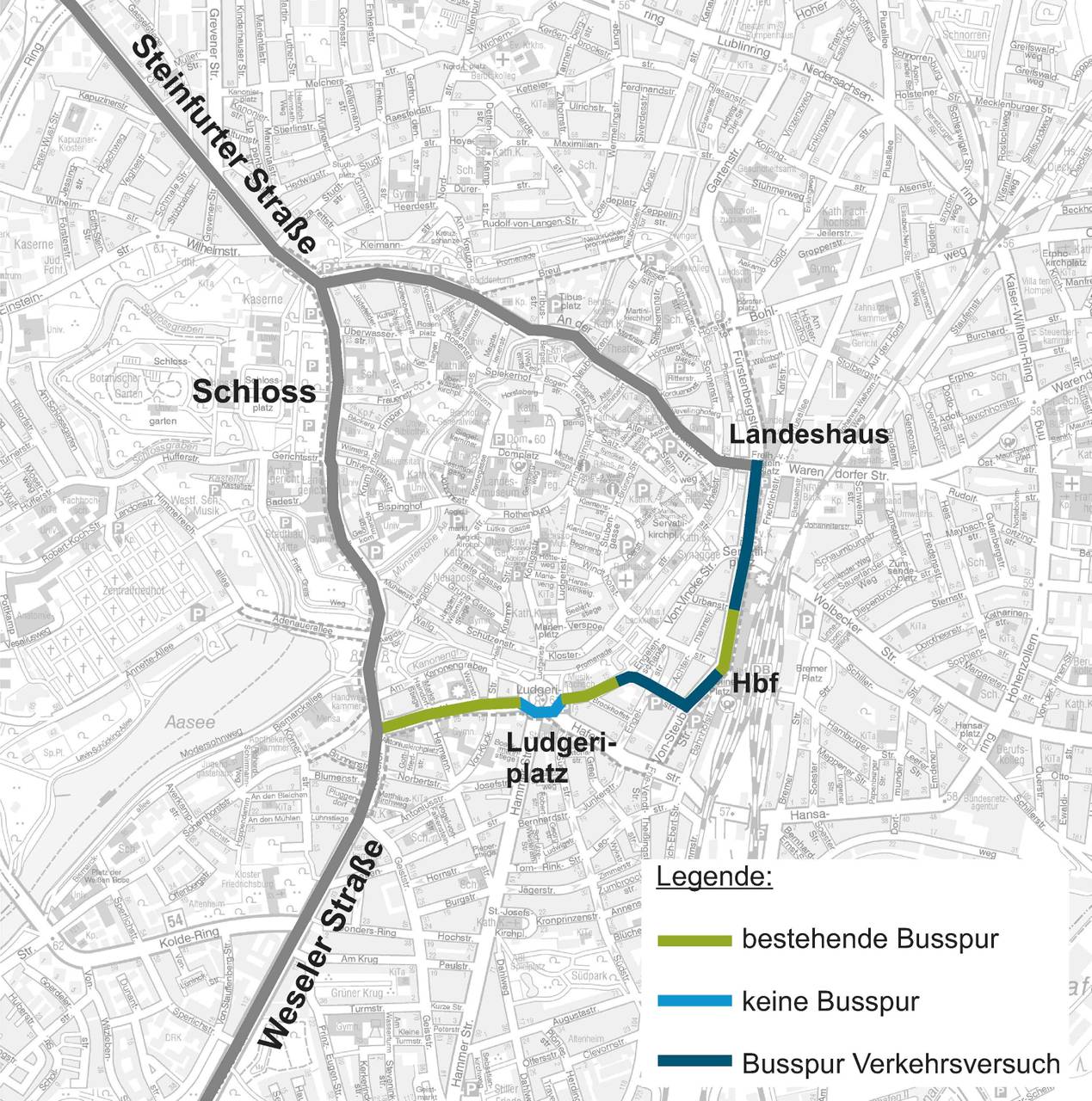 Verkehrsversuch 2: Busspur statt Auto (Ludgeri-Kreisel – LWL-Landeshaus)