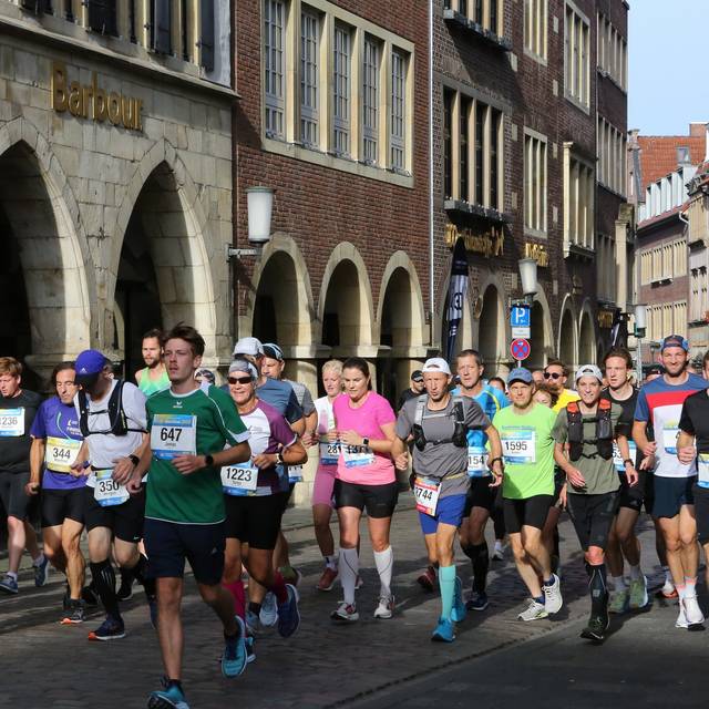 Das Publikum am Schlossplatz zählt von 10 runter, dann starten 3.500 Marathonis und kurz darauf auch die Staffelläufer:innen um 9 Uhr in den Münster Marathon. Auch dieses Jahr ist die Stimmung wieder fantastisch, vor allem rund um die vielen Bühnen in und um Münster. Auf der Strecke durch die Innenstadt, über den Aasee bis nach Nienberge und Roxel supporten die Münsteraner und Münsteranerinnen die Athlet:innen. Um kurz nach 11 Uhr kommt dann auch schon Samuel Kiplimo Naibei auf der legendären Zielgeraden am Prinzipalmarkt an. Der Kenianer verpasst mit einer überragenden Zeit von 02:09:20 haarscharf den Streckenrekord. Schnellste Frau wird die Äthiopierin Aberash Fayesa mit 02:29:21. Für einen ganz besonderen Moment sorgt Münsteraner Manuel Kruse. Als schnellster Deutscher und unter tosendem Applaus des gesamten Prinzipalmarkts erreicht er nach 02:23:53 die Ziellinie.