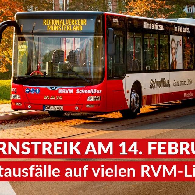 Am Donnerstag (23.) und am Freitag (24.11.) ruft die Gewerkschaft ver.di in Münster zum nächsten Warnstreik auf. Am Freitag sind eine Demo durch die Stadt und eine Kundgebung vor dem Dom vorgesehen.