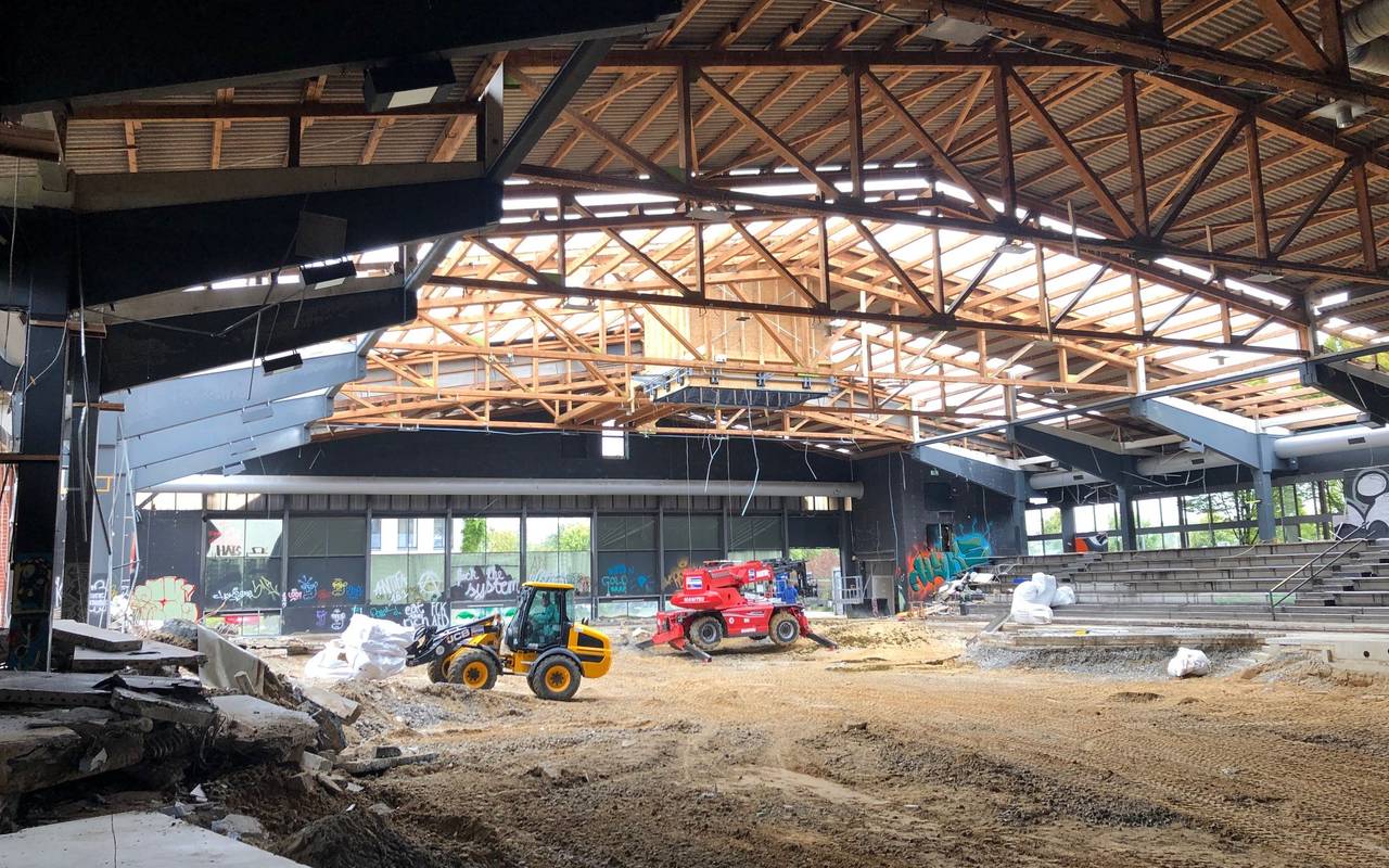 Die alte Eissporthalle an der Steinfurter Straße ist bald endgültig Geschichte: Der Abriss der ausgedienten Halle hat begonnen. Jetzt kann dort das lang geplante Leoland-Wohnquartier entstehen.