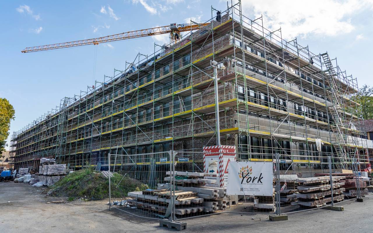 Im neuen York-Quartier in Gremmendorf-West kommt der Neubau der York Grundschule gut voran, ebenso wie die neue Zweifachsporthalle der vierzügigen Grundschule. Die aus recyceltem "Second-Hand-Klinker" gestalteten Fassaden der Gebäude sind fast fertiggestellt. Damit kann die Stadt wie geplant mit dem Innenausbau beginnen. Die Gemeinschaftsschule für rund 450 Mädchen und Jungen soll zum Schuljahr 2025/2026 in Betrieb gehen, sie soll rund 45 Millionen Euro kosten.