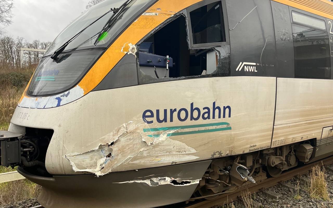 Im Bereich Umgehungsstraße/ Warendorfer Straße Höhe Maikottenweg ist ein Zug in einen Bagger gefahren.
